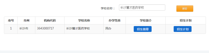 三、如何通过省教育厅阳光招生信息平台,了解长沙市麓才(湘麓)医药学校呢?