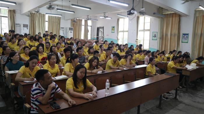 7月17日,全校教职工期末工作总结会议举行,各部门对2018年春季工作做了汇报,校长贺树华对老师们一学期的辛勤付出表示肯定,希望下学期各部门齐头并进,一切为了孩子,做出更出色的教学工作。