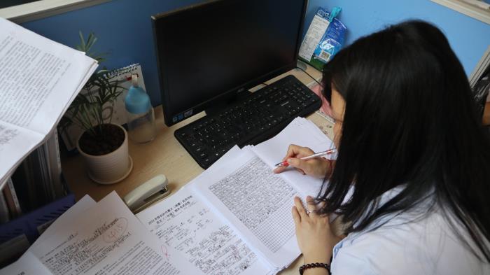 期末考试结束后,为了让孩子们快速知晓成绩,阅卷机、专业老师齐上阵,迅速汇总统计期末成绩。