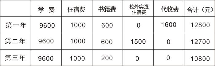新生报到时交齐第一学年的学费及杂费共计12800元,家庭确实困难者可申请按学期缴费,第一学期学费及杂费共计7200元(含代收费1600元),第二学期5600元。