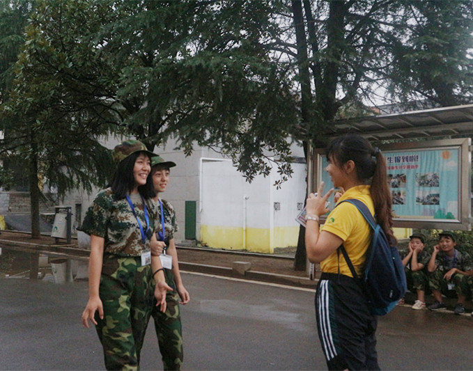 “你好!老师好!姐姐好!”……“主动问好”这个小习惯开始在迷彩绿的18级新生们中蔚然成风,尽快声音还不是那么大,笑容还有点点羞涩。