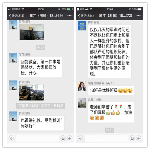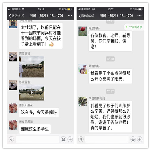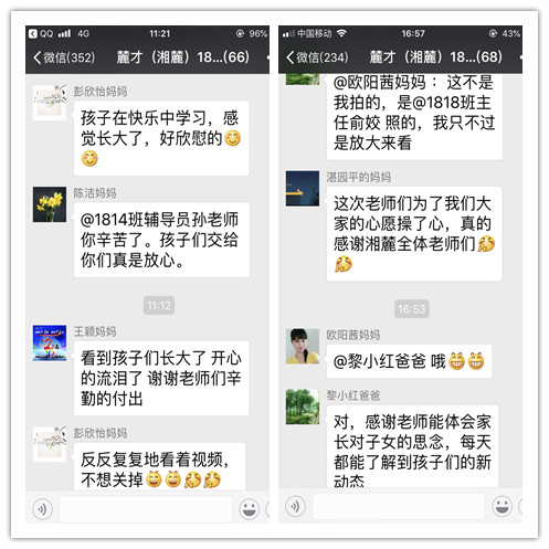 班级微信群更是炸开了锅:从照片和视频里找到了自家的宝贝:孩子们晒黑了!笑得很开心哦!感觉突然长大了!……隔着屏幕,体会到了家长们的那份思念,喜悦和欣慰。家长们也表现出对学校和老师的极大信任,相信孩子在湘麓能成长成才。