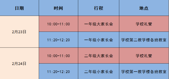 学校为家长们精心安排了大小家长会,具体时间如下: