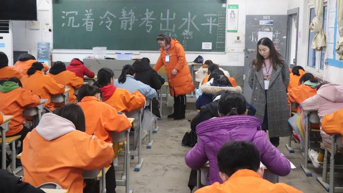 3月2日正式开考,历时2天,学生们安静答题,认真思考,仔细检查,老师们恪尽职守,规范监考,考场秩序井然。