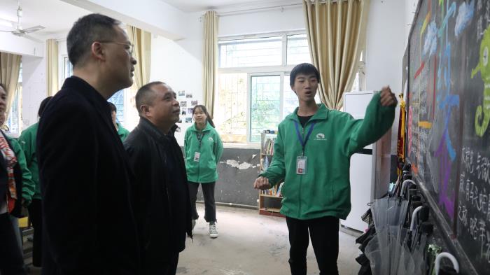 朱光葵董事长在学校领导的陪同下参观校园,感受快乐校园氛围。