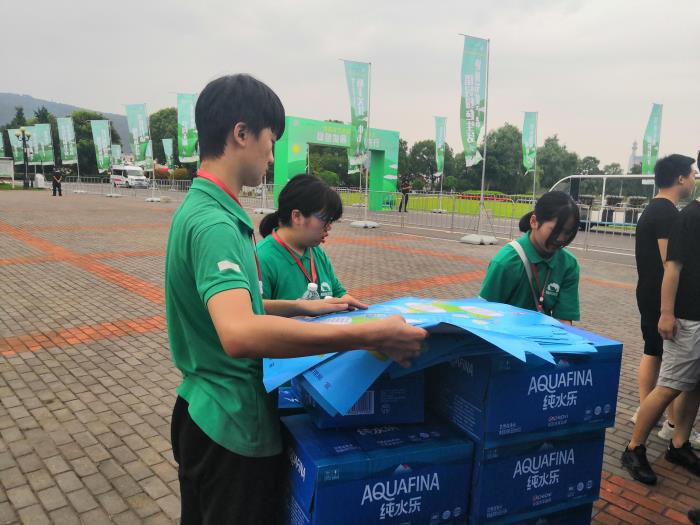 其他小伙伴也分别去了赛道沿途补给站的各个地点,他们将矿泉水一路一路地摆放整齐。本次活动中,有骑自行车的,也有跑步的,经过补给站,会伸手拿走一瓶水,同时还会说“谢谢”这两个字,这也是对我们小志愿者劳动的尊重。