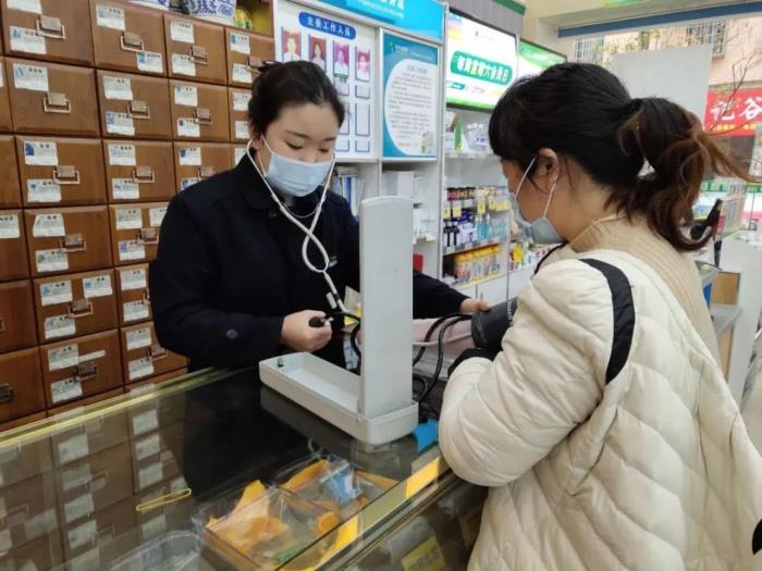 到了周末要为顾客测血糖。为避免人员聚集,很多药房都取消了这一举措。危靓考虑到测血糖是为糖友们监测身体健康状况,不能间断,便决定每个周末她提前一个小时开门,自测体温、换上工装、带好口罩、84拖地,艾条熏消,椅子按一米间距摆放好就上岗了。