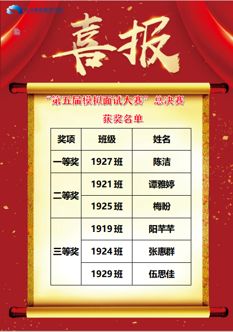 经过一系列精彩激烈的角逐,为期近两个月的模拟面试大赛圆满落幕,工作人员统计了所有参赛选手的复赛、决赛得分,最终评定出一、二、三等奖。