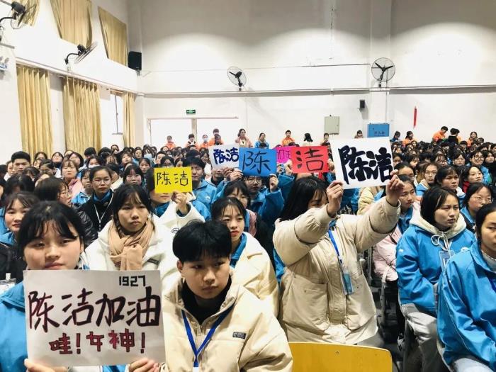 台下的学生跟着节拍,将“剪刀手大法”进行到底!