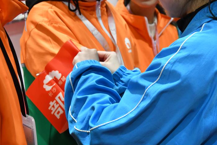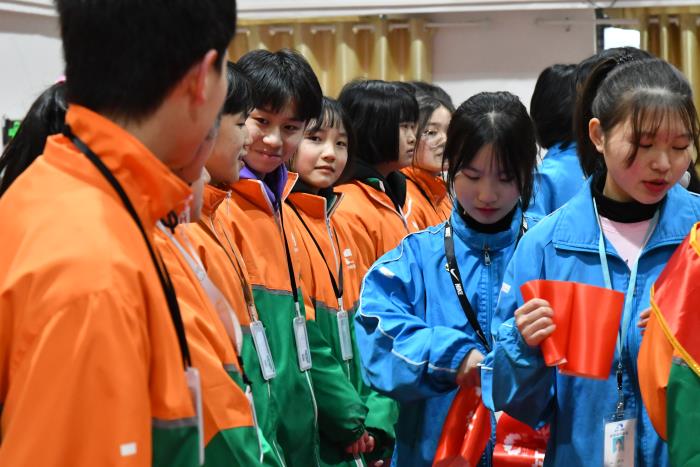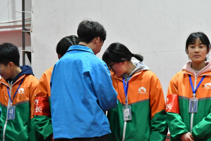 第八届校团委学生会成员郑重为新当选的第九届新校团委学生会干事们戴上袖章,交接团旗,既是仪式,更是传承。