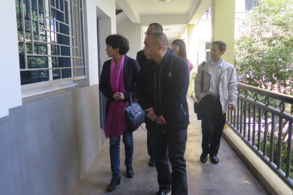 长沙湘麓医药学校校长易军陪同陈总一行走访了教室、形体房、食堂和宿舍。深秋阳光融融,正值学生课间操时间,陈总一行感受了湘麓学校独特的校园文化氛围和孩子们的阳光心态。