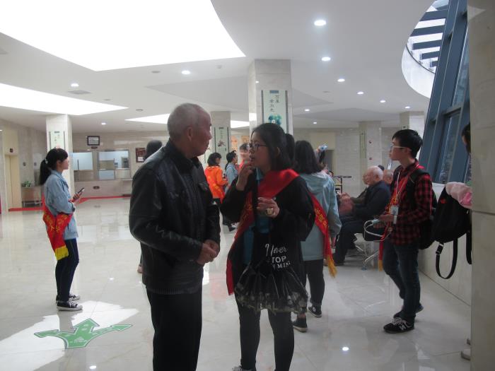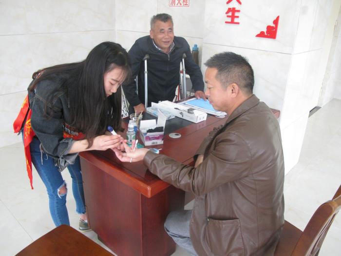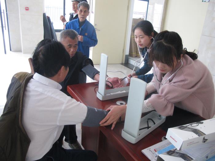 送健康,运用学校所学的专业技能为老人们量血压测血糖