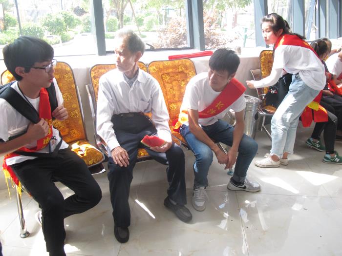 在敬老院,学生们表演了精心准备的节目,还陪老人们一起运动,吃着学生们送来的水果,老人脸上喜笑颜开,临走时,老人们在门口目送大家离开。湘麓的学子不仅有才还有爱,感恩教育,我们一直在践行!