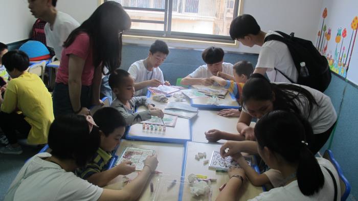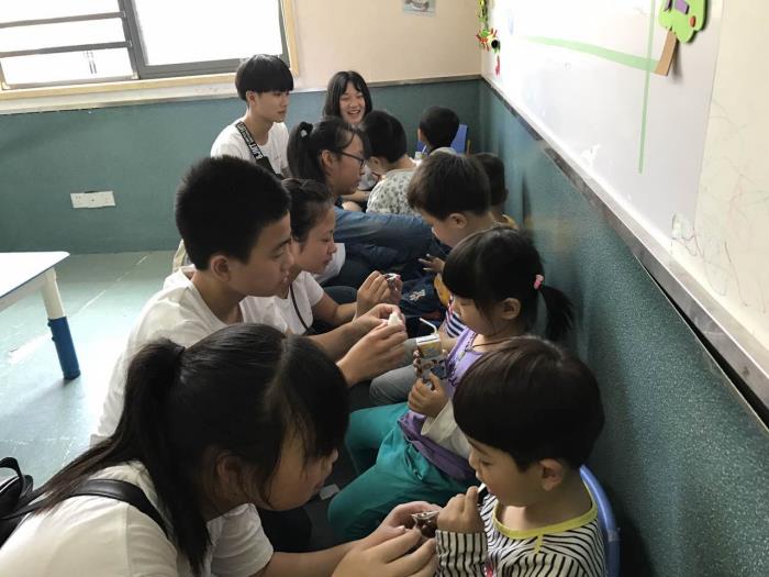 在星苑儿童康复中心,湘麓学子们教小朋友们唱歌,教小朋友们画画,爱心满满,在湘麓的老师眼里学生还是孩子,而在湘麓学生的眼里小朋友们也是孩子,或许,爱的教育就是如此,老师将爱的种子播撒在学生心底,学生将爱的力量传递。