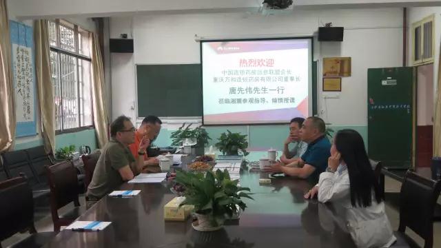 6月5日,中国连锁药房信息联盟会长、重庆万和连锁药房有限公司董事长唐先伟先生一行莅临湘麓参观考察。