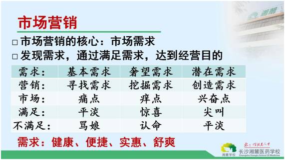 营销,怎样满足需求,那是我们要干的事,应该站在经营者的角度,所以是寻找、挖掘、创造。