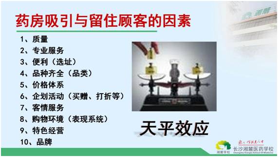 再加上特色经营(如铁路医保慢病医保中医坐堂等)和品牌本身,我们就可以罗列出药房吸引和留住顾客的十大因素:质量、专业、选址、齐全、价格、活动、客情、环境、特色、品牌。