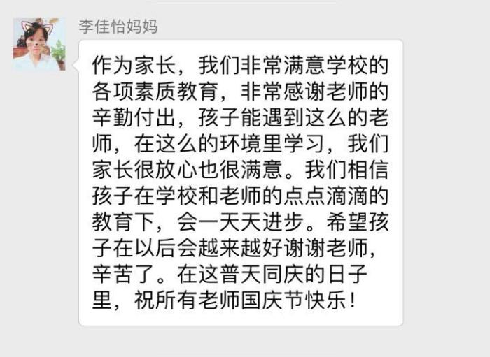 学生处处长周晶老师说:“这次国庆假期,湘麓孩子们不仅学会了规划生活,放松了身心,而且生活自理能力增强,与父母情感升温,这种有计划的假期安排,将一直成为我们湘麓训练学生成长的重要措施。同时我也希望家长们能支持孩子们把这种规划的好习惯一直延续。”