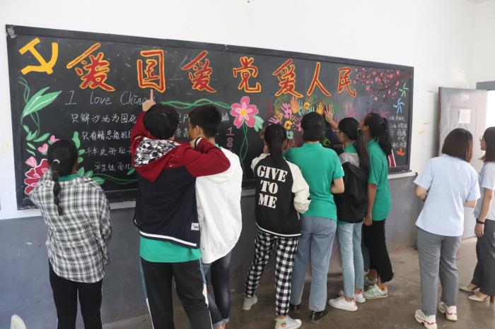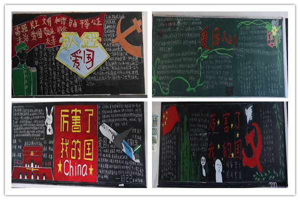 经过一个星期的精心准备,各班级海报及黑板报新鲜出炉!主题鲜明、创意无限的黑板报吸引了众多师生驻足观看,饶有兴趣评点一二。孩子们在校园浓郁的爱国主义氛围感染下,培养爱国情怀。