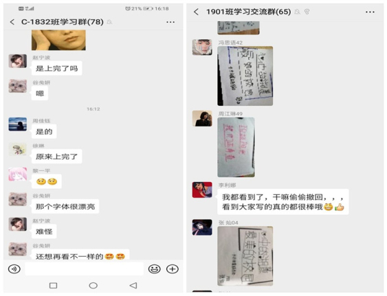 话说“授人以鱼不如授人以渔”真正的教学应是教会学生学习方法,让学生产生学习兴趣。直播课程结束后,学生私下添加老师的微信,继续请教书写要点,不断晒图请老师指点改进,感受到一股欣欣尚荣的力量,验证了兴趣是最好的老师。