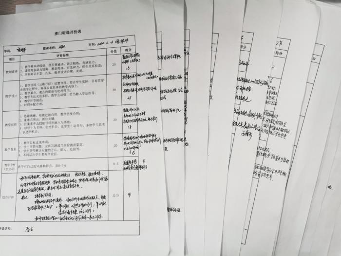 “推门听课”是随机安排,课堂教学少了矫揉造作,少了花拳绣腿,是原汁原味的“原生态”课堂,更能体现教师常态下的备课水平、专业能力、课题驾驭及教学效果。活动中,每位听课教师都详细记录授课老师的教学过程、授课思路及教育特色,以便课后能更好地与授课教师进行评课交流。