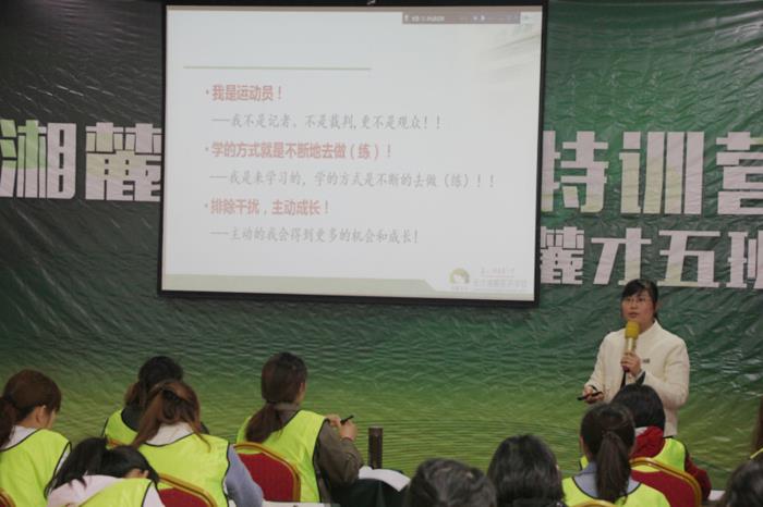 湘麓学校董事罗金萍以“参训心态”为主题,引导学员摆正心态,要以“运动员”的姿态,通过不断地去做去练,排除干扰,主动成长。