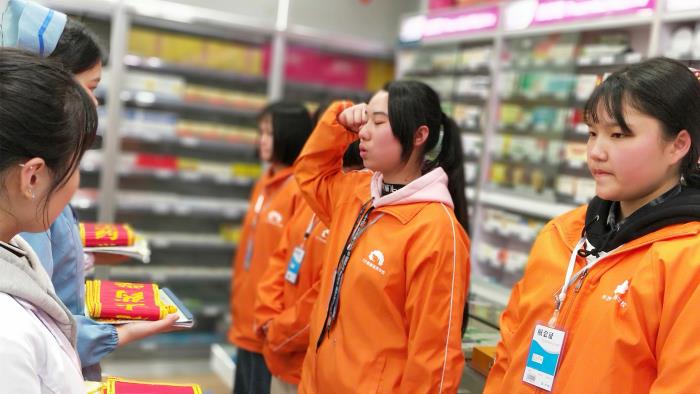 最近,随着2017级实践生分批来到诺舟大药房开始学中做,做中学的“师傅带徒弟”特色学习模式,简单而庄重的拜师仪式在各大门店陆续举行——