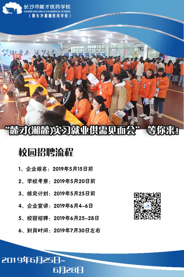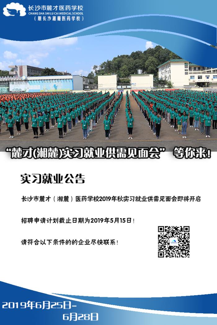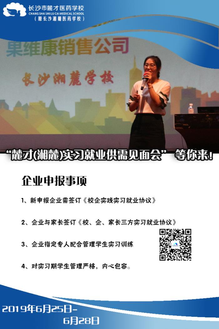 【湘麓快线】长沙市麓才(湘麓)医药学校2019“实习就业校园供需见面会”招聘企业报名工作开始啦!